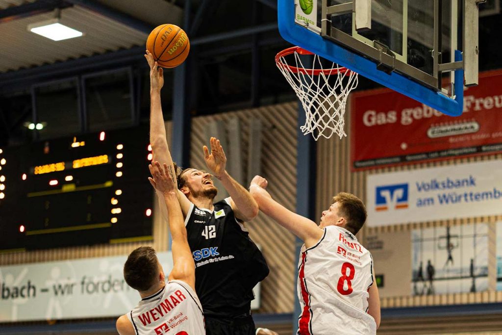 Trotz der späten und ungewohnten Spielzeit war die Gäuäckerhalle, wie gewohnt, gut gefüllt. Beide Teams zeigten von Anfang an, dass sie zurecht auf den Tabellenplätzen Vier und Fünf stehen. Von der ersten Minute an entwickelte sich ein sehr intensives Spiel mit hohem Tempo und immer wieder ansehnlichen Offensivaktionen. Die jungen Würzburger, die von ihrem Head Coach und ehemaligen Nationalspieler Alex King wieder hervorragend eingestellt wurden, zeigten trotz ihrer Ausfälle eine sehr couragierte Leistung. Die Flashers dagegen versuchten durch die körperliche Überlegenheit zu punkten. Anders als in den vorherigen Partien fielen bei den Gastgebern die Würfe deutlich besser. Dies war auch nötig, da auch die Würzburger, die Big Mans Daniel Mayr und vor allem Brian Butler sehr gut verteidigten. Das erste Viertel endete mit 16:14 relativ ausgeglichen. Im zweiten Abschnitt zogen die Flashers nochmal das Tempo an und erspielten sich einen kleinen Halbzeitvorsprung von 41:30. Auch weil der Liga Topscorer, Hannes Steinbach, relativ gut unter der Kontrolle war.